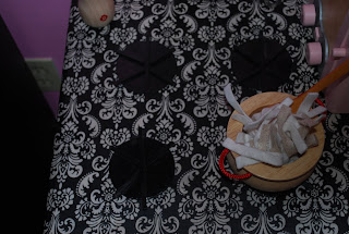 We started off with 10 pieces of wood that we purchased from the shelving department at Ikea. Hubby finally got to use some power tools that have been sitting around.