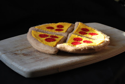 Last night I created a Build able Pizza with a stuffed crust! This set includes one pizza that is approximately 8 inches, with sauce and cheese sewn on and 8 pepperoni, 6 green peppers, and 5 mushrooms that are loose to allow your little chef to create as desired. Perfect for a pizza party!